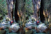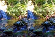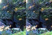 | 結構滝前で楽しんで落口方面へ。ロープがあれど、ここから降りる勇気はありません。左岸の踏み跡を登り枝尾根を越えます。ちなみに遊歩道は出合の滝までです。ここより上流はハード系の滝屋、沢屋さんの世界です。 | |||