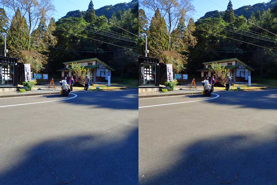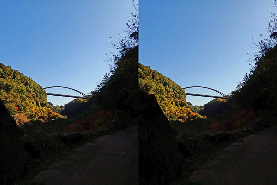 | 志布志港を10時前に出発。フェリーの着岸から出発まで1時間近くかかってしまった。11:34駐車場出発。駐車場にある管理事務所?で協力金として300円必要です。途中で瀧見大橋を見あげます。残り秋を横目に進みます。 | |||