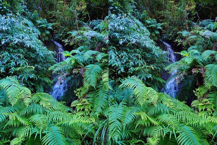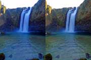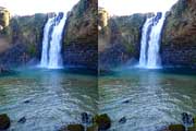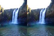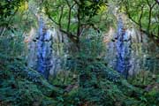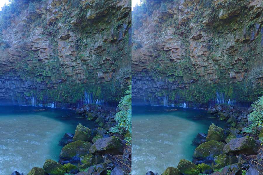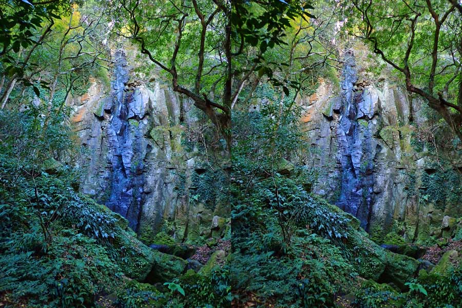 | 11:41、11:53と無名滝を撮影。潜流瀑かと思ったけど地形図には谷線があった。遊歩道には木で出来た部分もあったので、雨の時は滑りそうです。11:55到着。とても広い滝壺です。落水までが遠いので、立体写真的には悲しいです。 | ||||