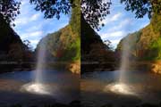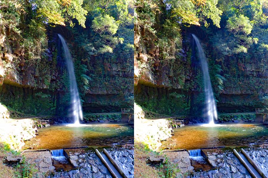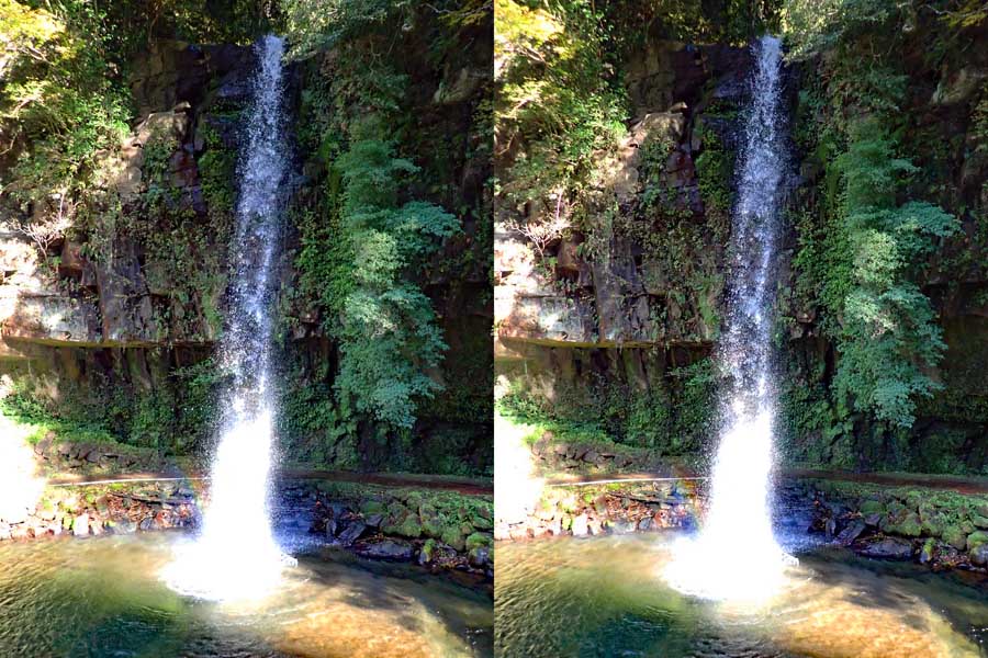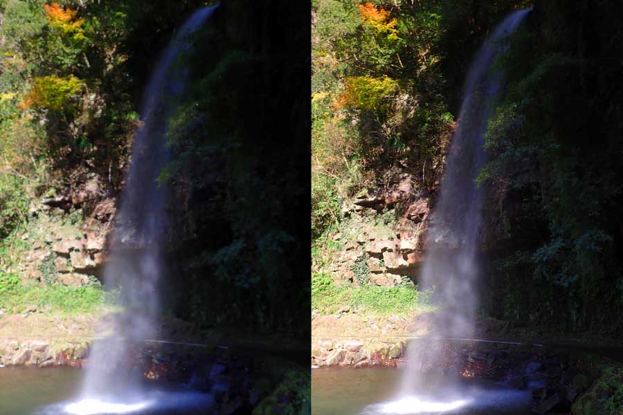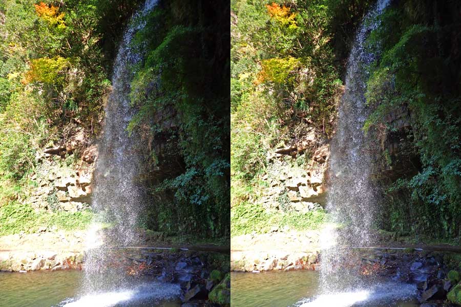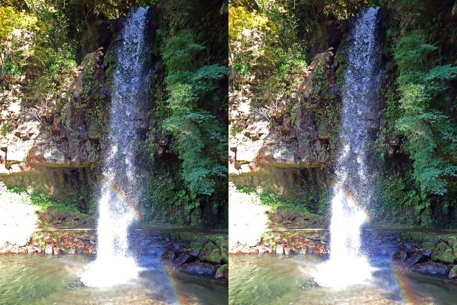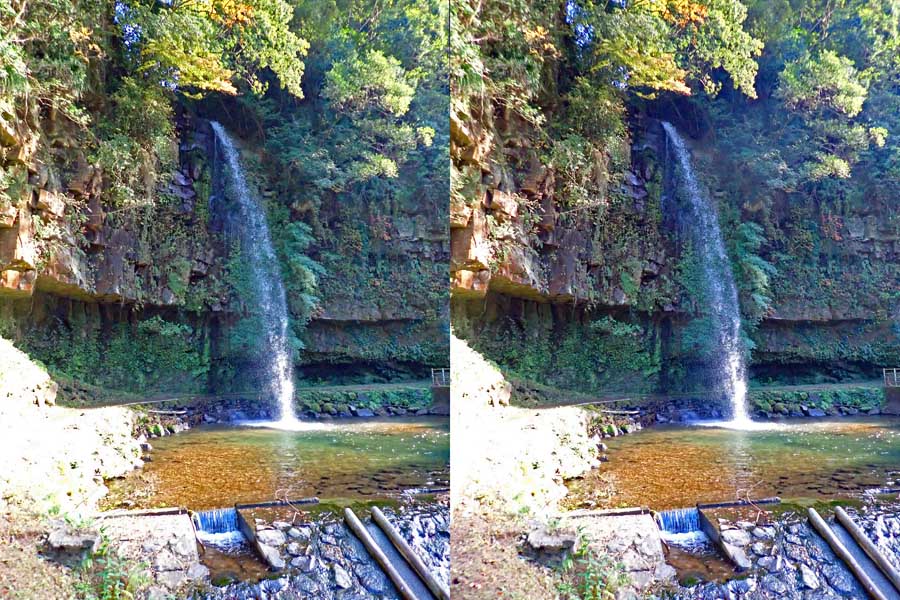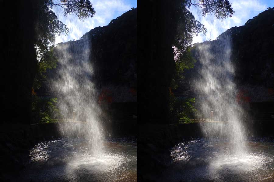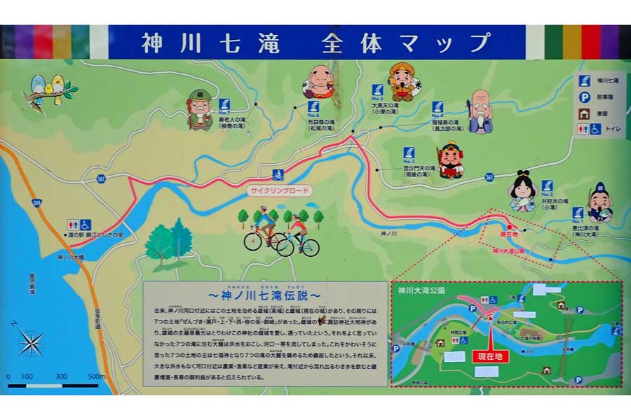 案内板の地図表示でも小滝横に白い部分があります。その部分に神之川虹の吊り橋への螺旋階段の表示があったのかも・・・。