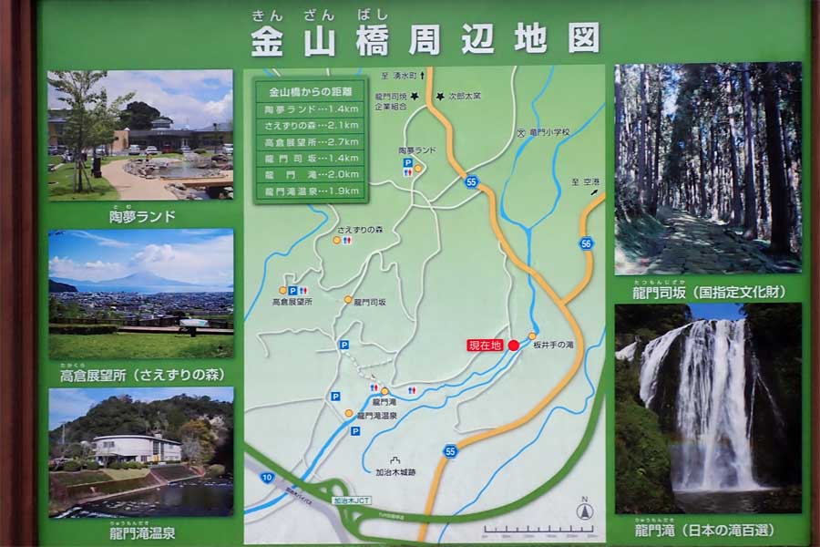 | 加治木IC交差点から県道55号線を北上。750mで左折、800mで金山橋駐車場です。同行者:鈴さん | |||||