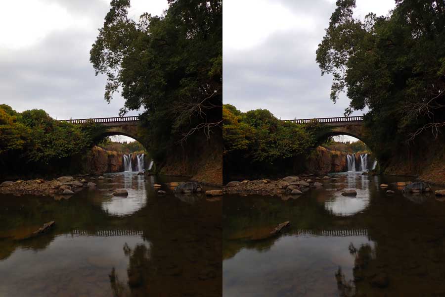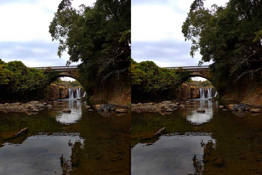 | 網掛川左岸を下流に歩いて行けば川に降りることが出来ます。そこから金山橋のアーチの中に落水を見ることが出来ます。もう少し川の中央に行けばアーチの真ん中にきれいに収まるのですが、流れの中に入る必要がありました・・・。次回があればジャブジャブ出来る季節に行きたいです。 | ||||