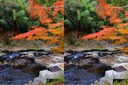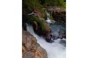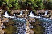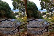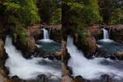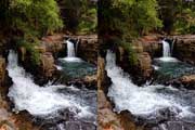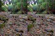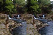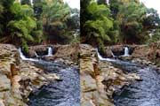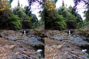 | カワセミの滝です。地質図によると下流の龍門滝方面が玄武岩質安山岩で上流の板井手滝方面がデイサイト・流紋岩となっています。カワセミの滝は二つの地質の境目に出来た滝かも知れません。 | |||