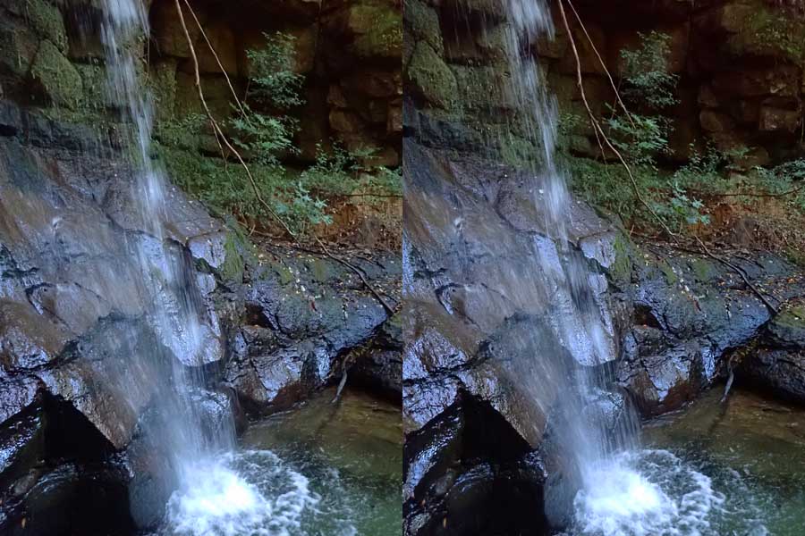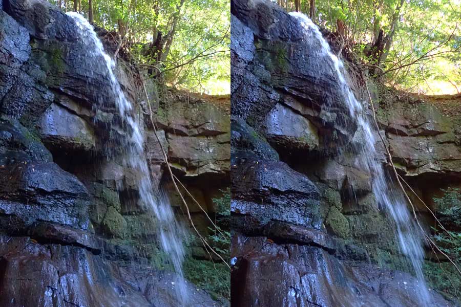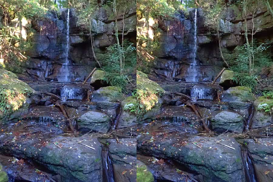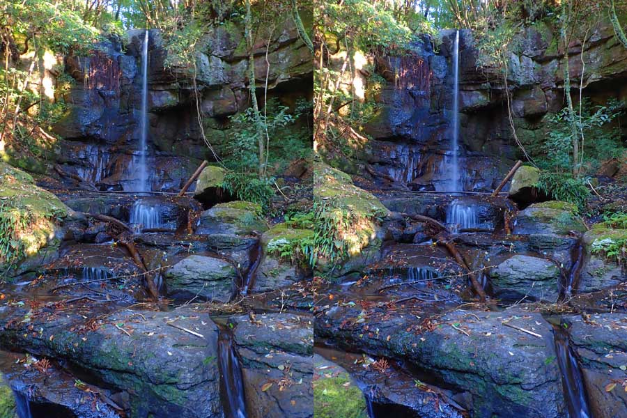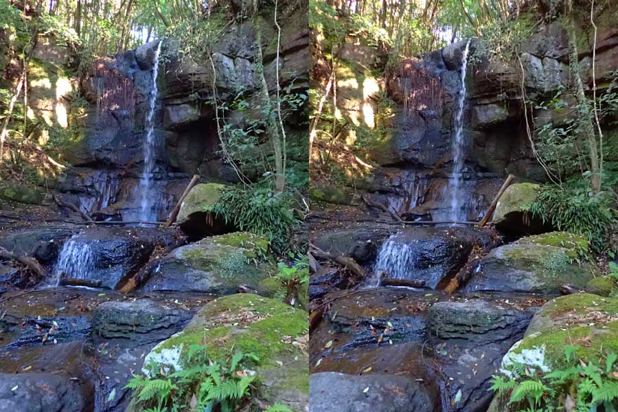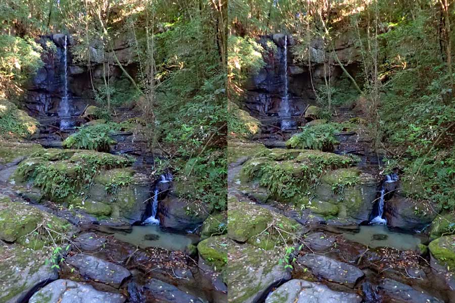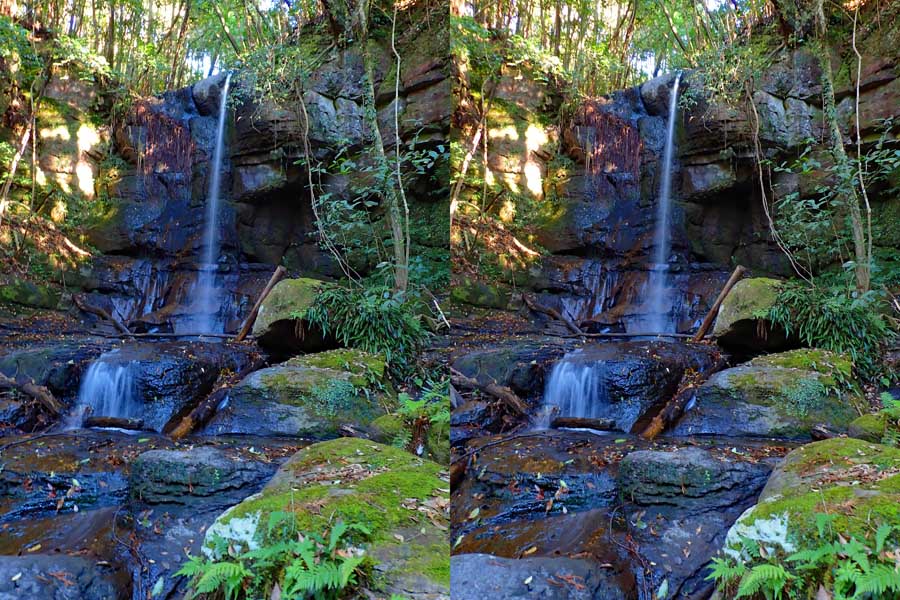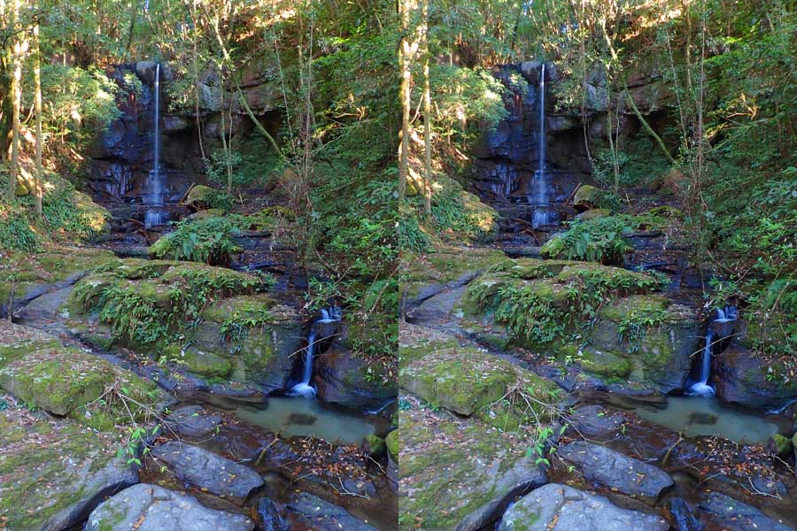 道からも滝が見えます。道から滝まではナメ床が続いています。撮影しながら滝に近づきます。結構滑ります。