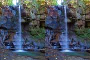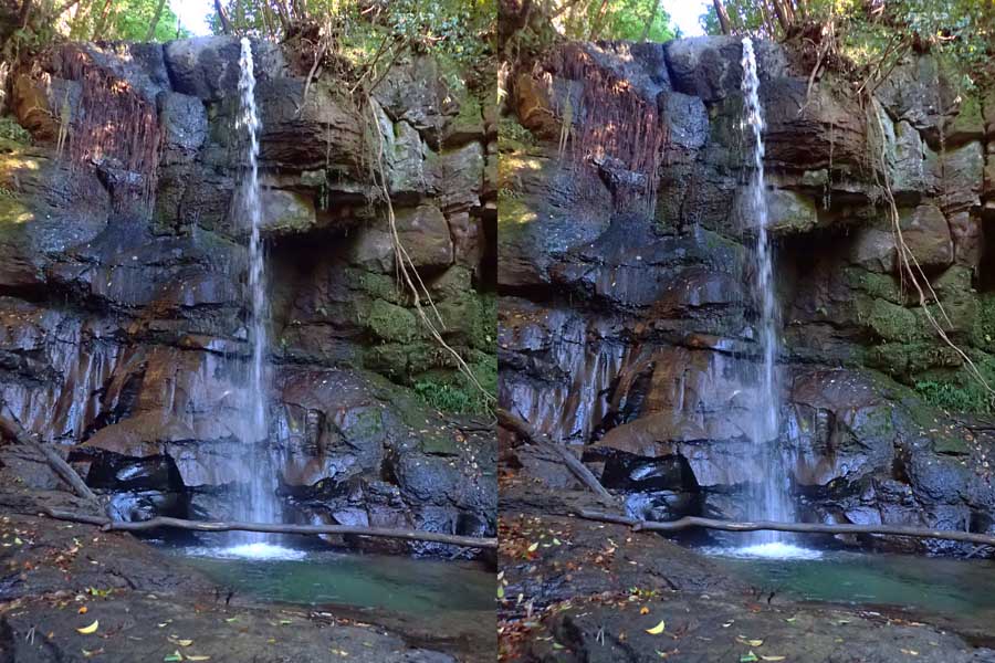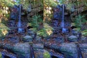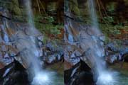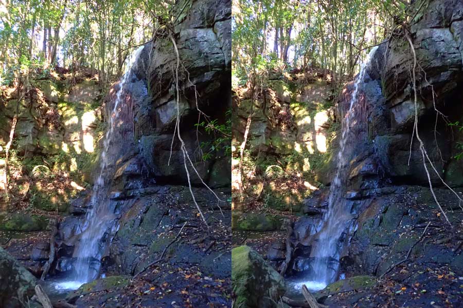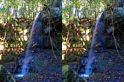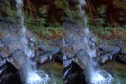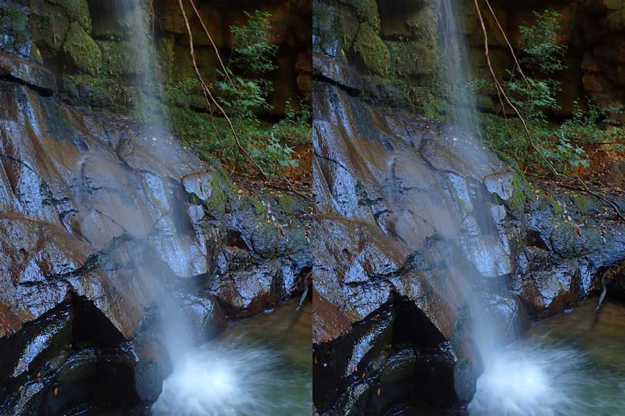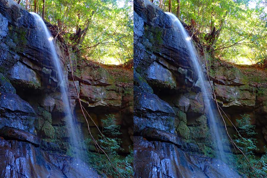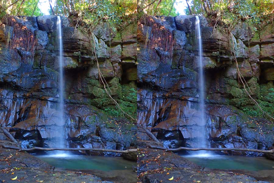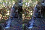 細い一条の繊細な落水が美しいです。普段はもっと水量が多いのかな・・・。滝の右側に回り込みます。
