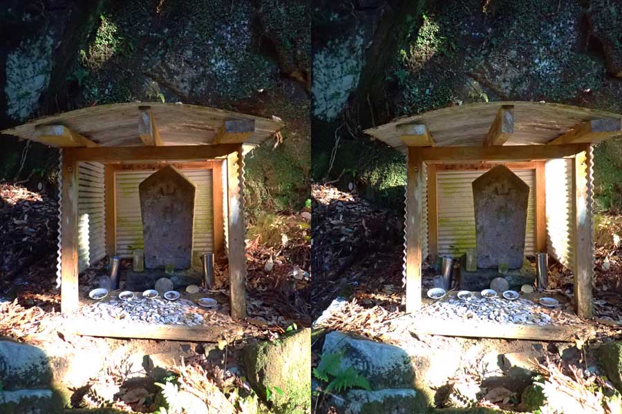 次は左側から・・・。そのまま右岸を登ると山神様の祠がありました。