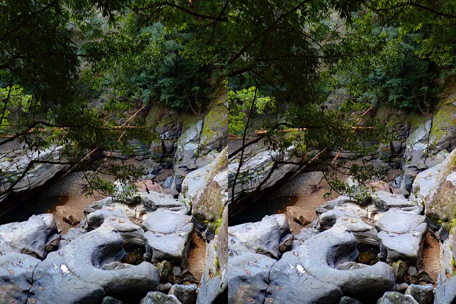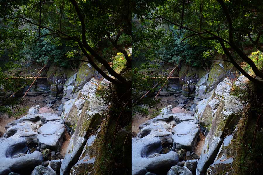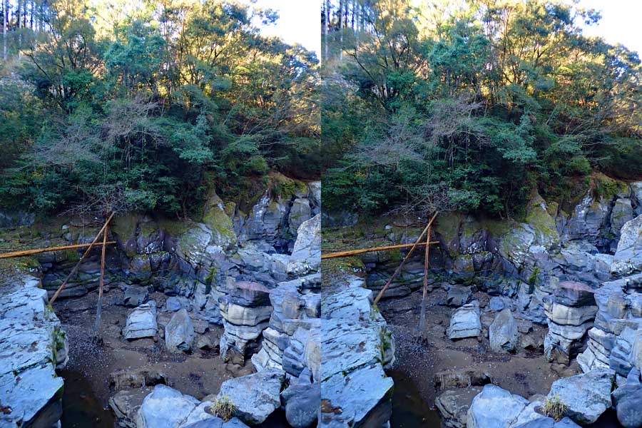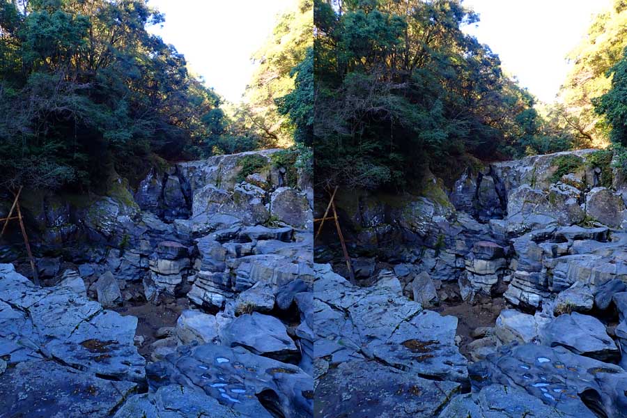 | すぐ下流の溝ノ口滝も、単なる絶壁でした。 | ||||