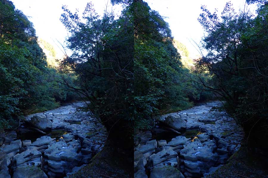 | 三連轟の滝駐車場が目標。少し下流に降り口があります。 | ||||||