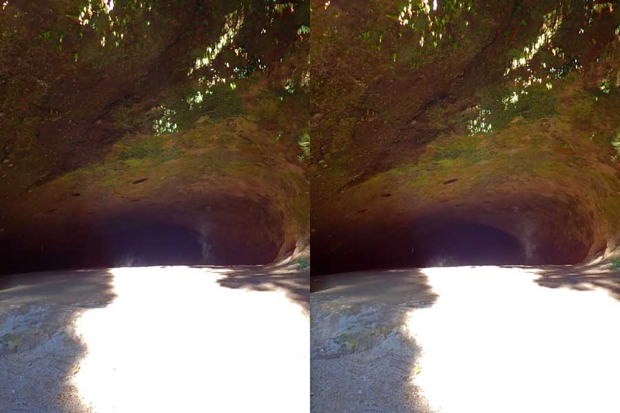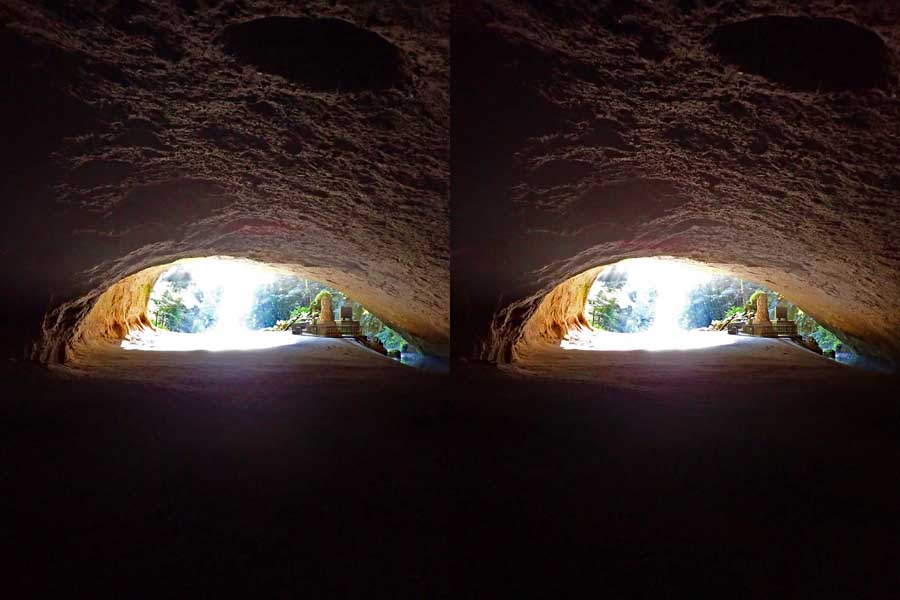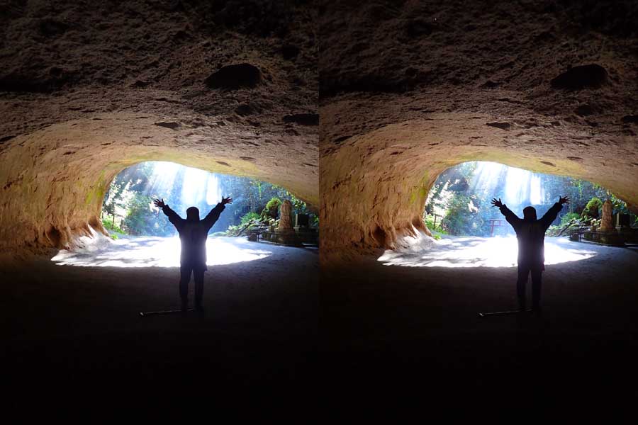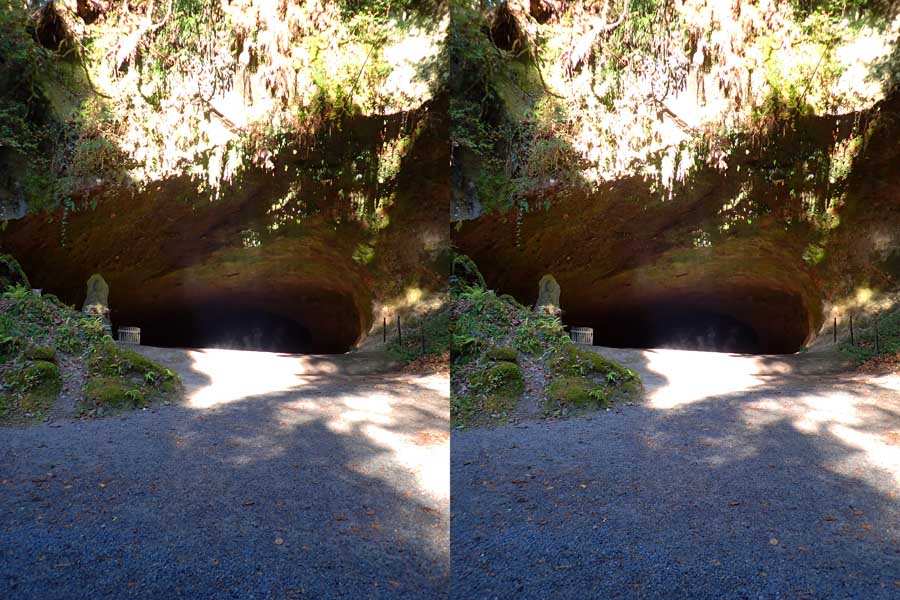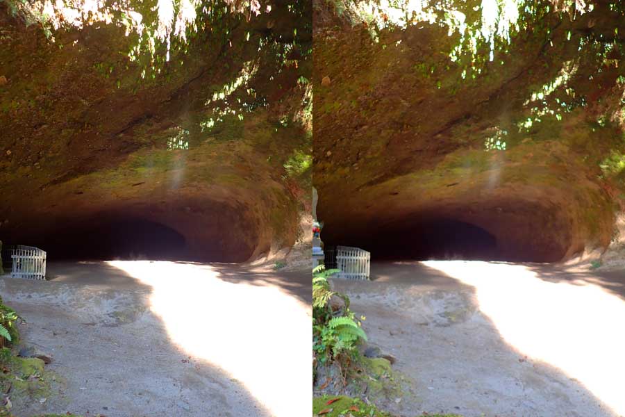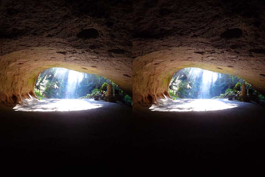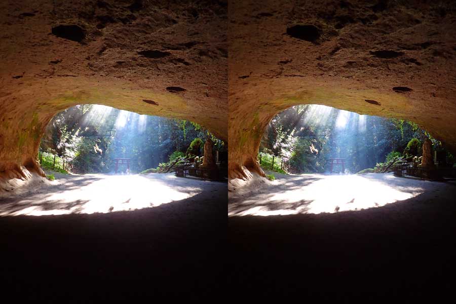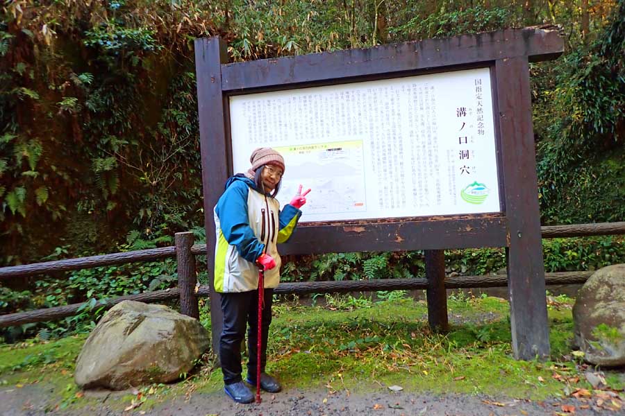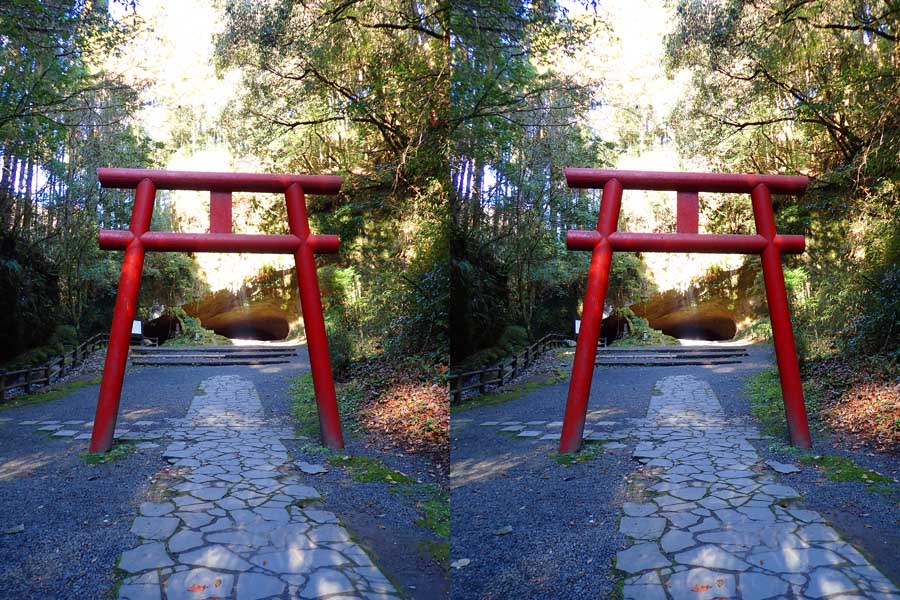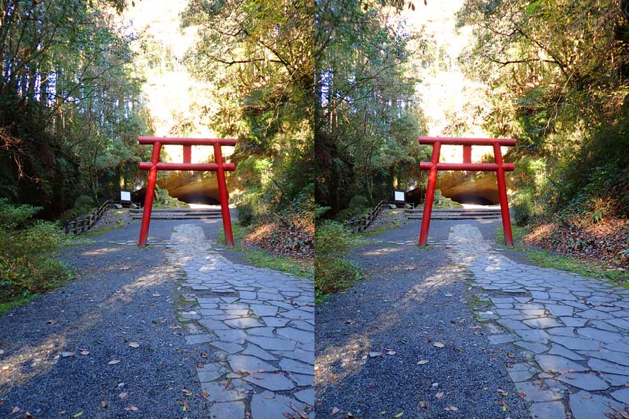 | ここは寄るかどうか迷ったスポットなのですが、来て良かったです。鳥居を抜けて進みます。説明板がありました。火砕流、シラス台地、火山が造った洞窟ですね。 | ||||